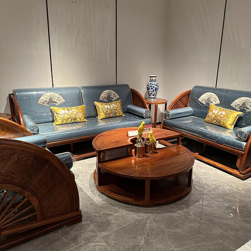 चीनी शैली का शास्त्रीय महोगनी सोफा तांबे के सिक्कों से प्रेरित है, जिसका अर्थ है