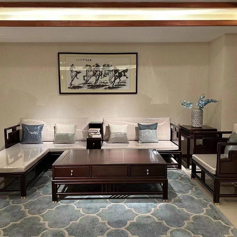 यह नई चीनी शैली का आबनूस लिविंग रूम सोफा एक घरेलू उत्कृष्ट कृति है जो शिल्प कौशल और सौंदर्यशास्त्र का प्रतीक है, और नई चीनी शैली के अनुरूप है। हमने हजारों ग्राहकों के लिए चीनी शैली का फुल-केस कस्टमाइजेशन प्रदान किया है, जिसमें हार्ड डेकोरेशन + पूरे घर में लकड़ी के काम का कस्टमाइजेशन + पूरे घर में महोगनी फर्नीचर मैचिंग + सॉफ्ट डेकोरेशन मैचिंग शामिल है।